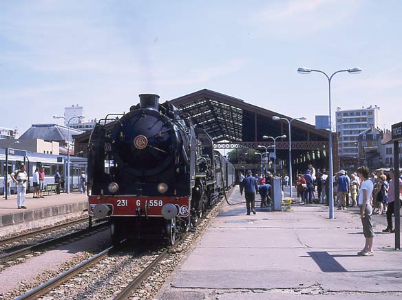 SNCF allowed passengers and locals in to the yard alongside the station to watch the servicing of 231G558 accompanied by her support vehicle. June 1 2003