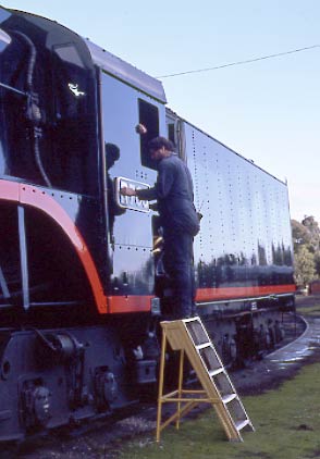 fitter in charge Warren Hall helps R761 becomes R703. Newport Works Tarp